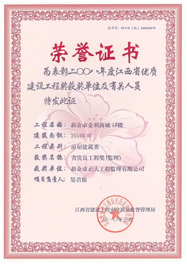新余市正大工程監(jiān)理有限公司依托新余市建筑設(shè)計(jì)院,于1995年11月成立,是新余市開(kāi)展監(jiān)理工作最早的監(jiān)理單位,本公司具有建設(shè)部核發(fā)的房屋建筑工程甲級(jí)監(jiān)理資質(zhì)、市政公用工程乙級(jí)監(jiān)理資質(zhì)、國(guó)家人防辦核發(fā)的人防工程監(jiān)理乙級(jí)資質(zhì)。我公司始終堅(jiān)持“客戶至上、質(zhì)量第一、信守合同”的經(jīng)營(yíng)理念;追求“為社會(huì)創(chuàng)造價(jià)值、為業(yè)主創(chuàng)造效益、為自身謀求發(fā)展”的經(jīng)營(yíng)宗旨;遵循“守法、誠(chéng)信、公正、科學(xué)、優(yōu)質(zhì)、高效”的工作原則,以雄厚的技術(shù)力量、完善的管理制度、豐富的監(jiān)理經(jīng)驗(yàn)、良好的企業(yè)信譽(yù)迅速成為我市監(jiān)理行業(yè)的一支新銳力量!